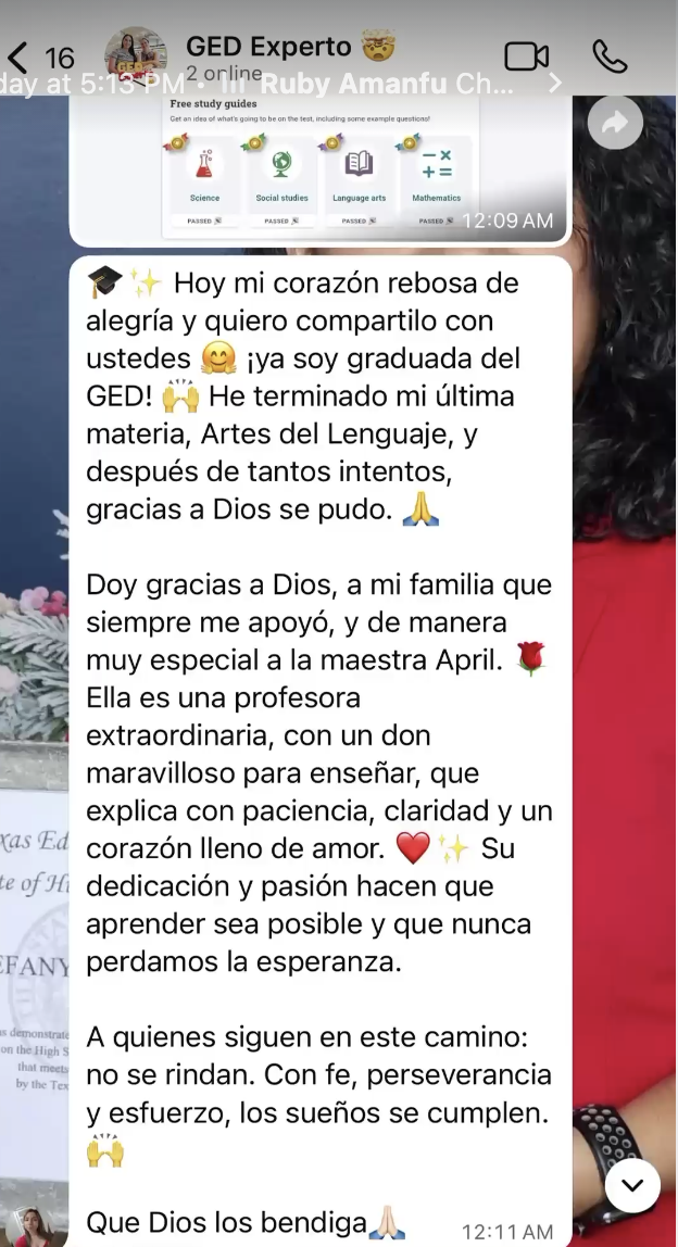 que tiene el sueño de obtener el certificado de GED® en los Estados Unidos 👩🎓👨🎓